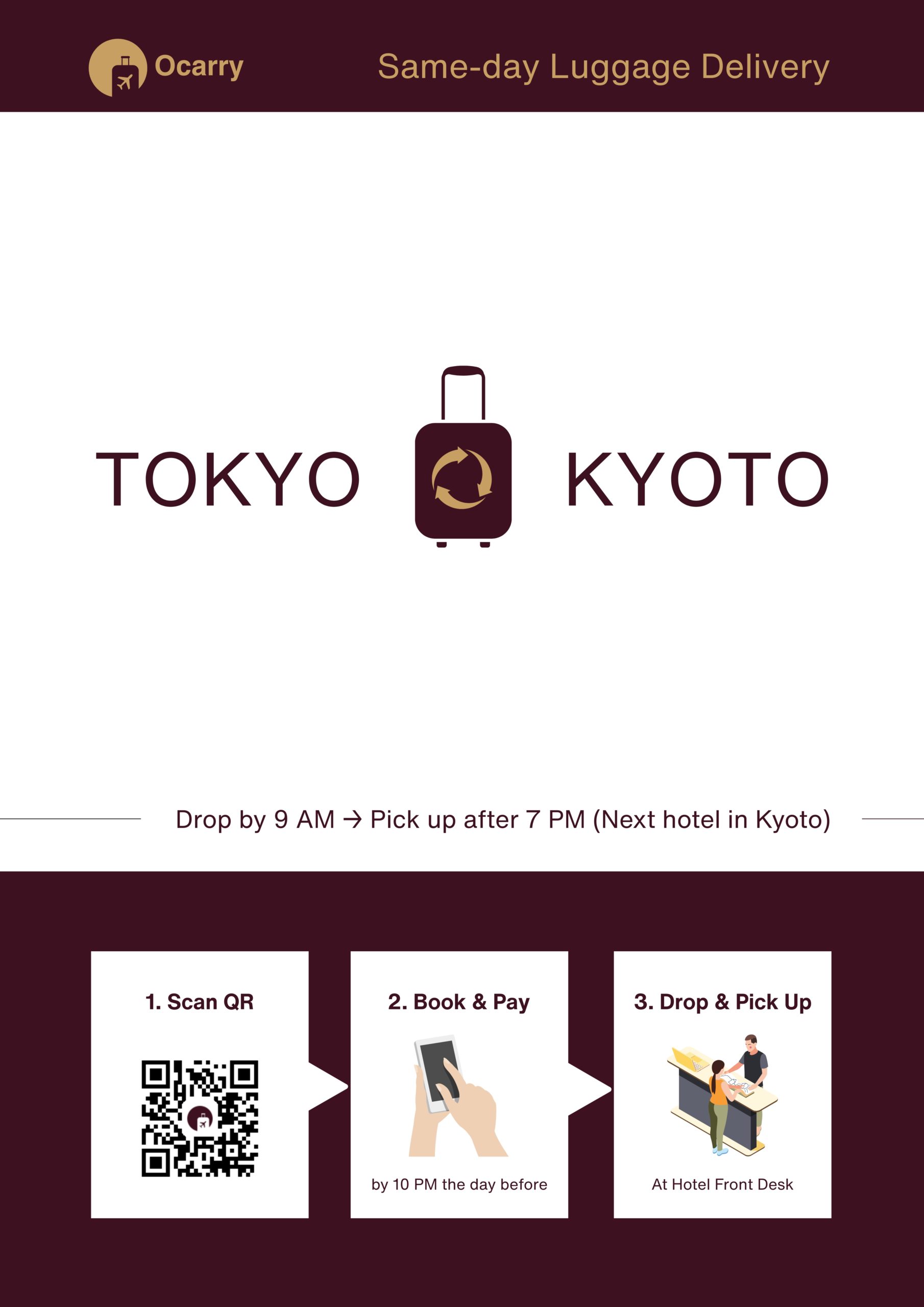 そうした瞬間は表舞台だけでなく、移動や環境づくりといった土台に支えられて初めて成立します。帰国後に訪日旅行者向けの荷物配送に挑戦したのも、荷物の負担を減らすことでお客様の時間と体験を守り、特別な瞬間をより良いものにしたいと考えたからです。